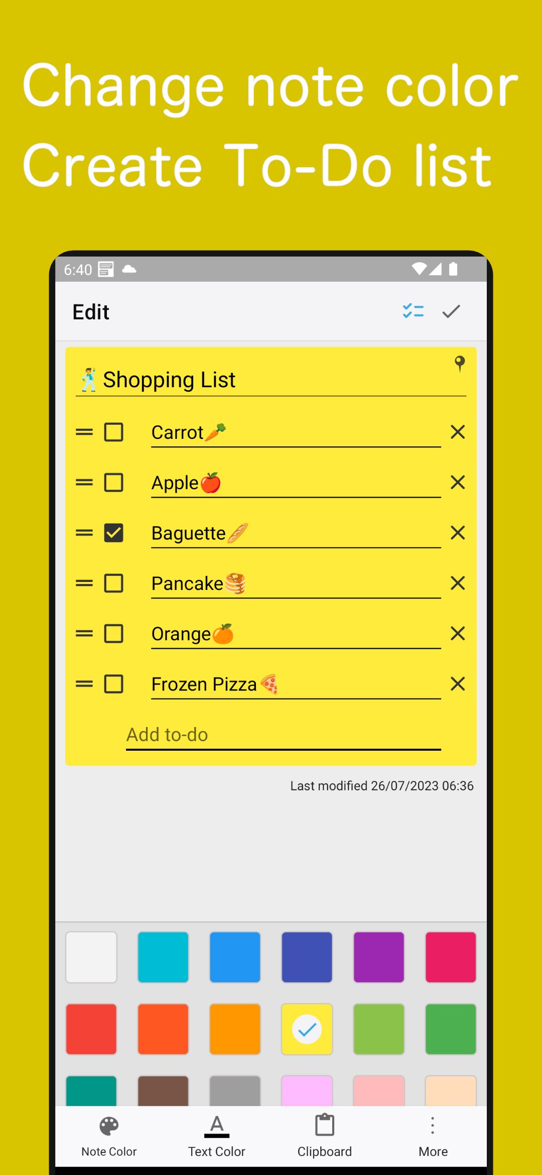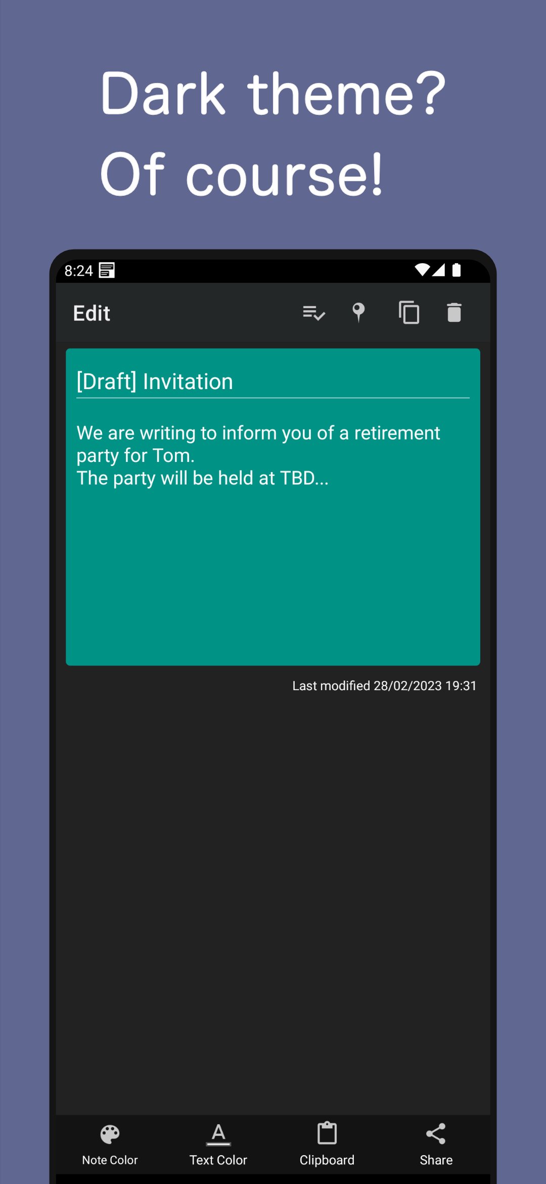 بہت سارے رنگوں میں سے انتخاب کریں اور نوٹ کے مواد کو Gmail، Facebook اور مزید پر شیئر کریں۔