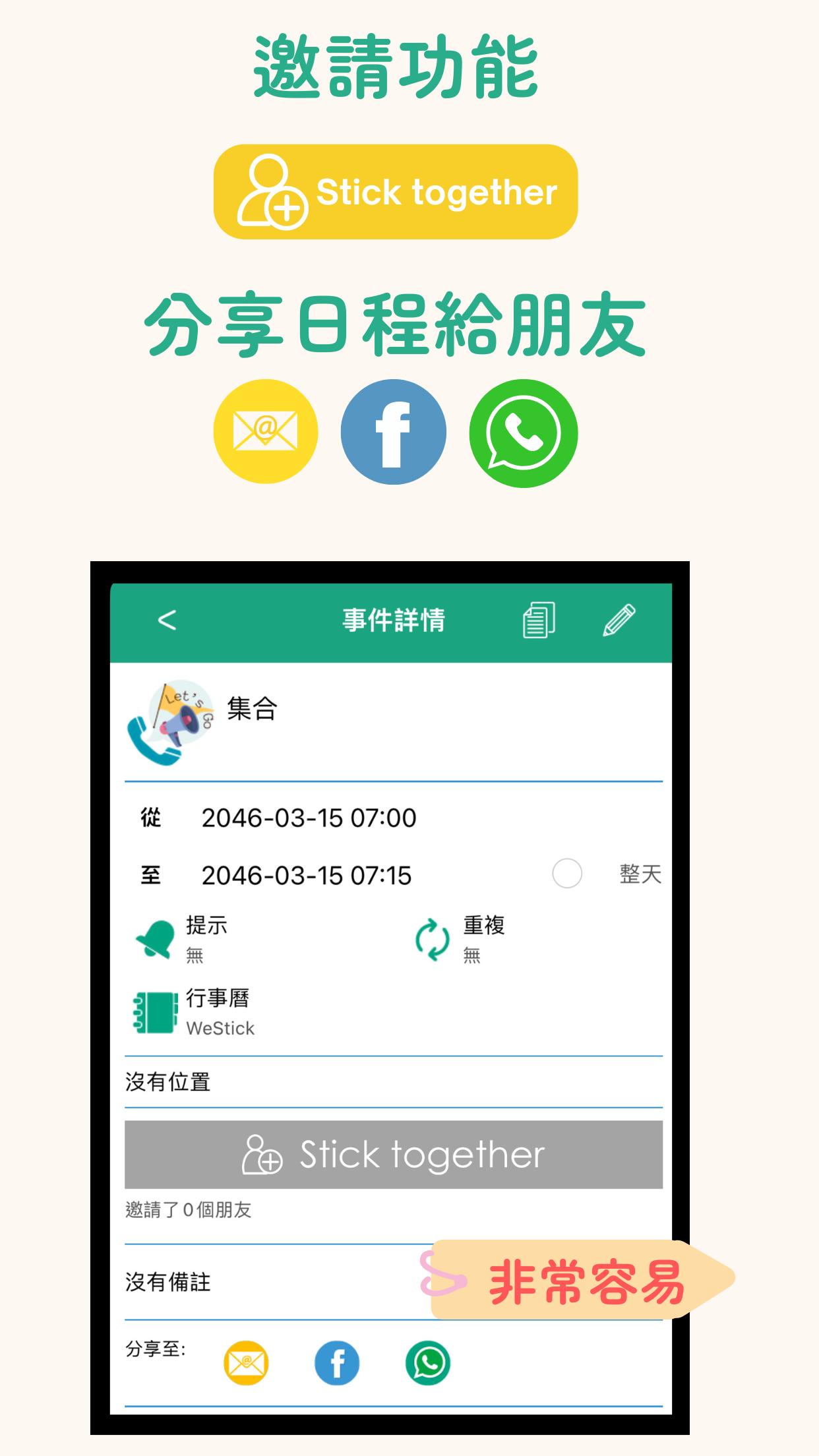 - "اسٹک ٹوگیدر" فنکشن: شیڈول بناتے وقت دوستوں کو سرگرمیوں میں حصہ لینے کے لیے مدعو کریں۔