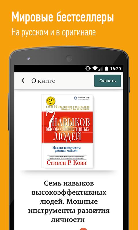 «Гибридная книга» - текстовая книга, синхронизированная с аудиоверсией. Технология дает возможность переключения между чтением и прослушиванием «на лету». Теперь вы сможете читать книгу стоя в пробке, а для того чтобы перейти к прослушиванию фонограммы, начитанной профессиональным диктором, вам достаточно нажать одну кнопку. Диктор начнет читать с места, на котором вы остановились в режиме чтения.