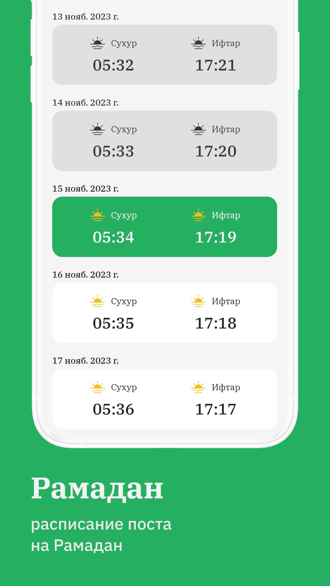 Một bản trình bày hoàn toàn mới và được mô phỏng lại về lịch cầu nguyện của người Hồi giáo với thiết kế hiện đại, đẹp mắt.