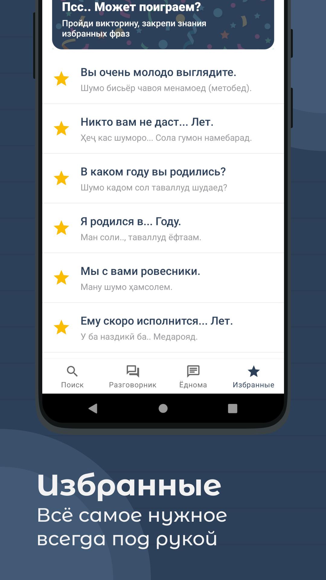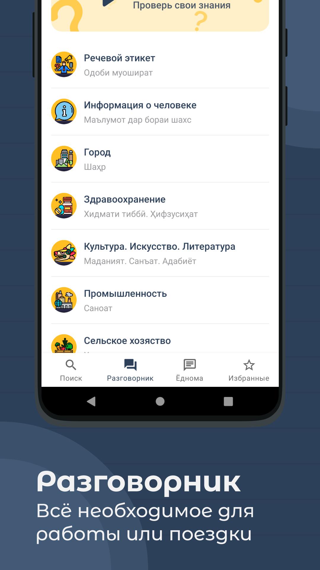 ✅ Farhang là một ứng dụng đa chức năng kết hợp từ điển, sách cụm từ tiếng Nga-Tajik và một quyển duy nhất (tập hợp các quy tắc cho ngôn ngữ Tajik).