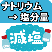 商品に記載されている「ナトリウム」から簡単に塩分量(食塩相当量)を計算できる電卓アプリです。