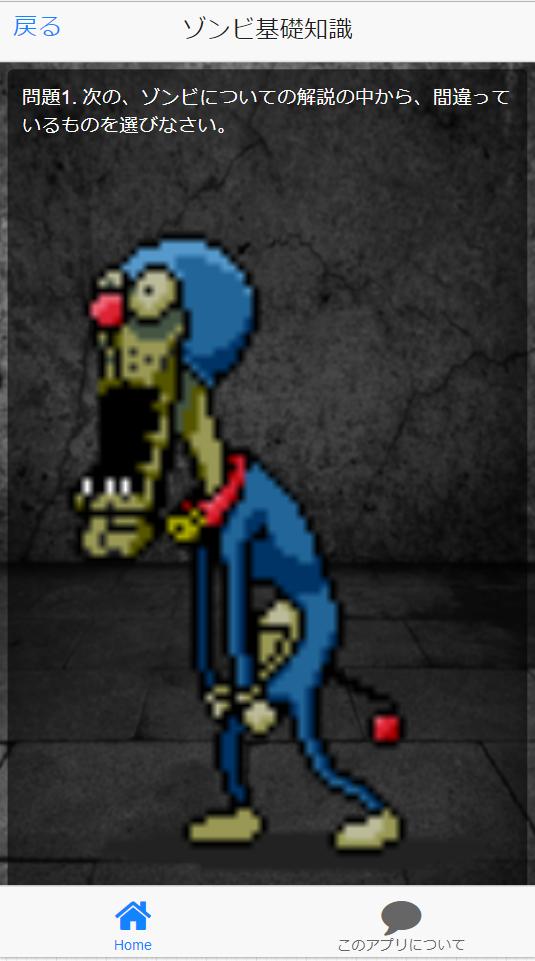 このアプリは、ゾンビから逃れるためのクイズアプリです。