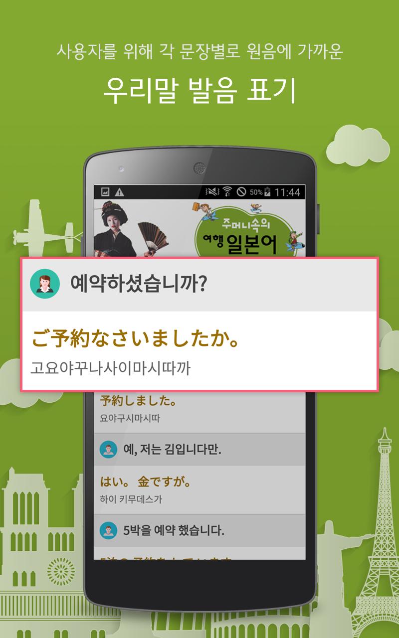 - 각 문장별로 원음에 가까운 우리말 발음을 표기하여 외국어를 모르는 분들에게도 많은 도움이 될 것입니다.
