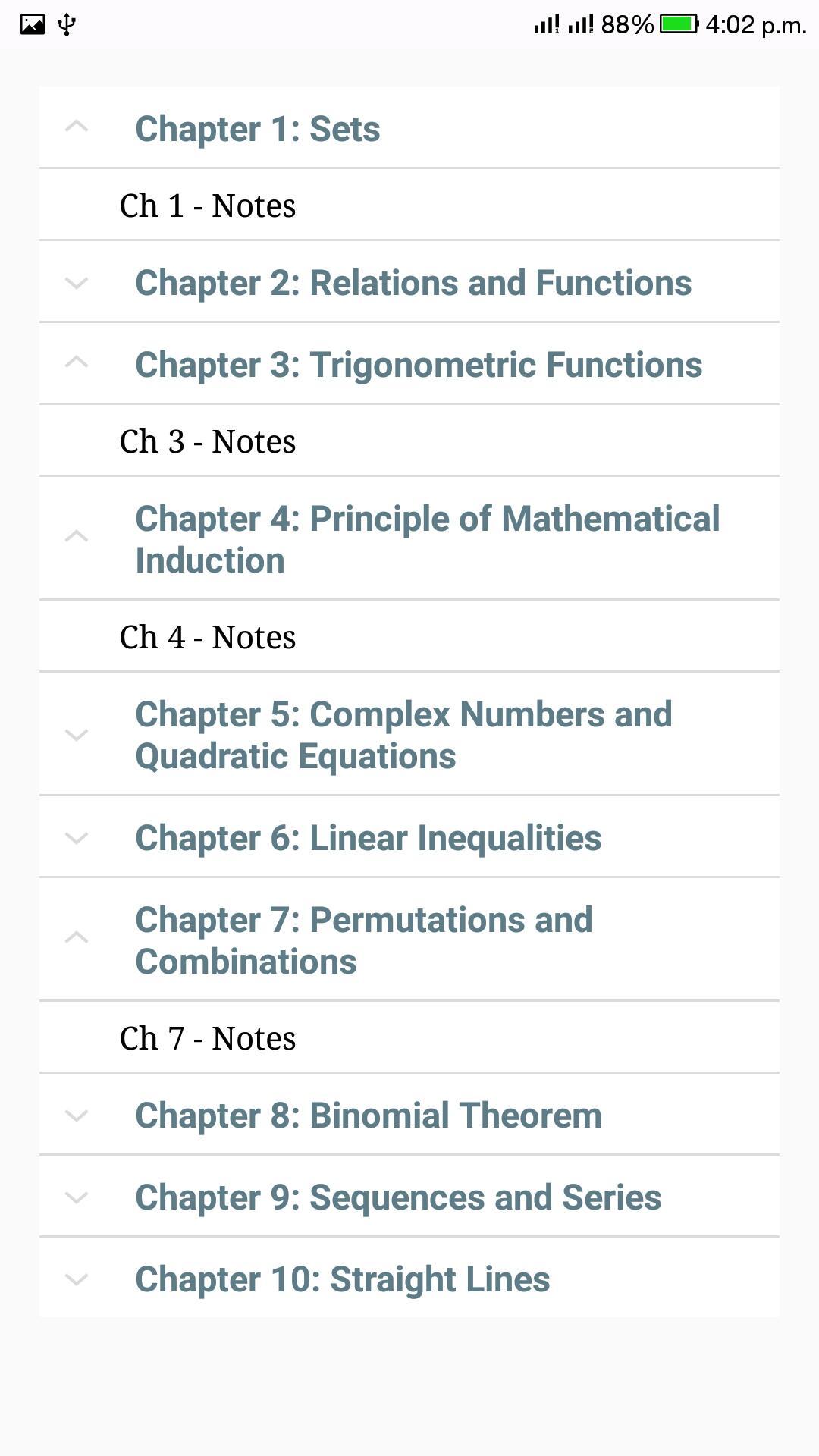 This app has been written to solve all the problems given in the textbook prescribed by the National Council of Education Research (NCERT), an autonomous organisation that guides the government on how to set the curriculum for schools. Their prescribed textbook is widely used by schools following the Central Board of Secondary Education (CBSE). The class 11 Mathematics NCERT book Notes systematically cover solutions for problems from 16 chapters of the class 11 NCERT maths textbook. The solutions are arranged in a manner that ensures comprehensive learning and also makes better use of the student’s time. Even the most difficult problems are categorically broken down to make learning easier. The NCERT Notes for class 11 maths covers exercises given in Binomial Theorem, Trigonometric functions, Statistics and many other chapters. Hence, the class 11 maths NCERT Notes are available to any student with access to the internet. All you need to do is download this free application.