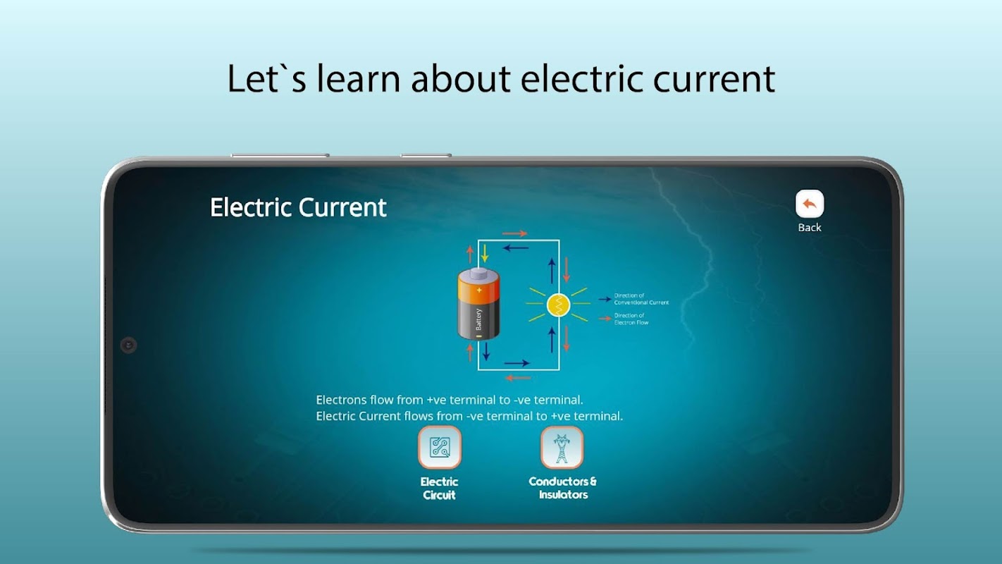 Ứng dụng minh họa quy trình về chất cách điện và dây dẫn, dòng điện và dòng điện cũng như điện trở bằng các phương pháp giảng dạy rất đơn giản và thú vị. Ngoài ra, ứng dụng vật lý Đại lượng điện giúp tính toán điện áp và điện trở. Với mục tiêu làm cho các khái niệm trở nên đơn giản và thú vị đối với học sinh, ứng dụng này được thiết kế với hình ảnh động, thí nghiệm ảo và hoạt động. Những thí nghiệm và hoạt động ảo như vậy sẽ đảm bảo rằng học sinh trở nên tò mò hơn về chủ đề này và hiểu biết sâu sắc về khái niệm này.