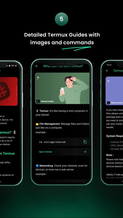 Ứng dụng này được thiết kế đặc biệt dành cho những người dùng termux mới làm quen với termux, nó giúp trở thành chuyên gia / chuyên gia về termux.