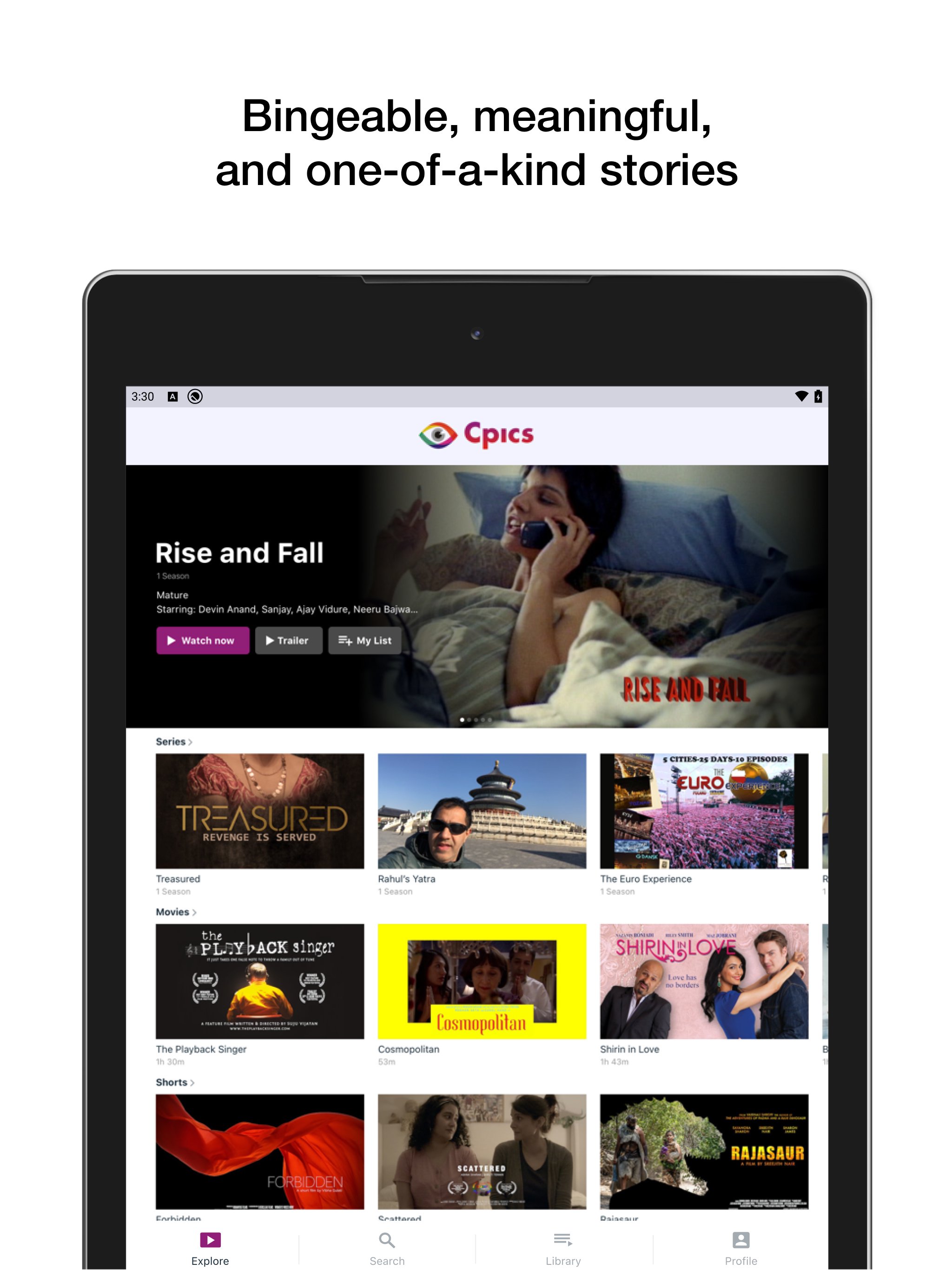 Get ready for content like you’ve never seen before! With unlimited access to bingeable, meaningful, and one-of-a-kind stories, Cpics is committed to providing you with the most inclusive entertainment experience across communities from around the world. All content is curated and developed by leading independent creators to bring the most diverse stories that are representative of communities around the world including the South Asian diaspora.