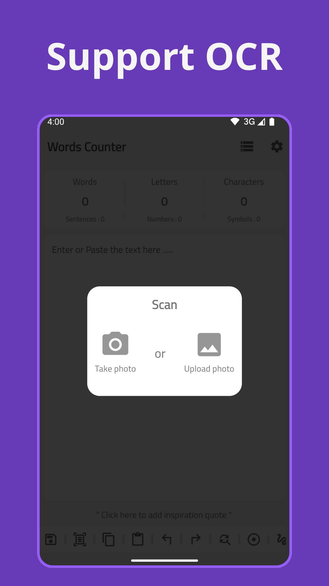 Analyze and count text easily! OCR, text splitting & save notes.