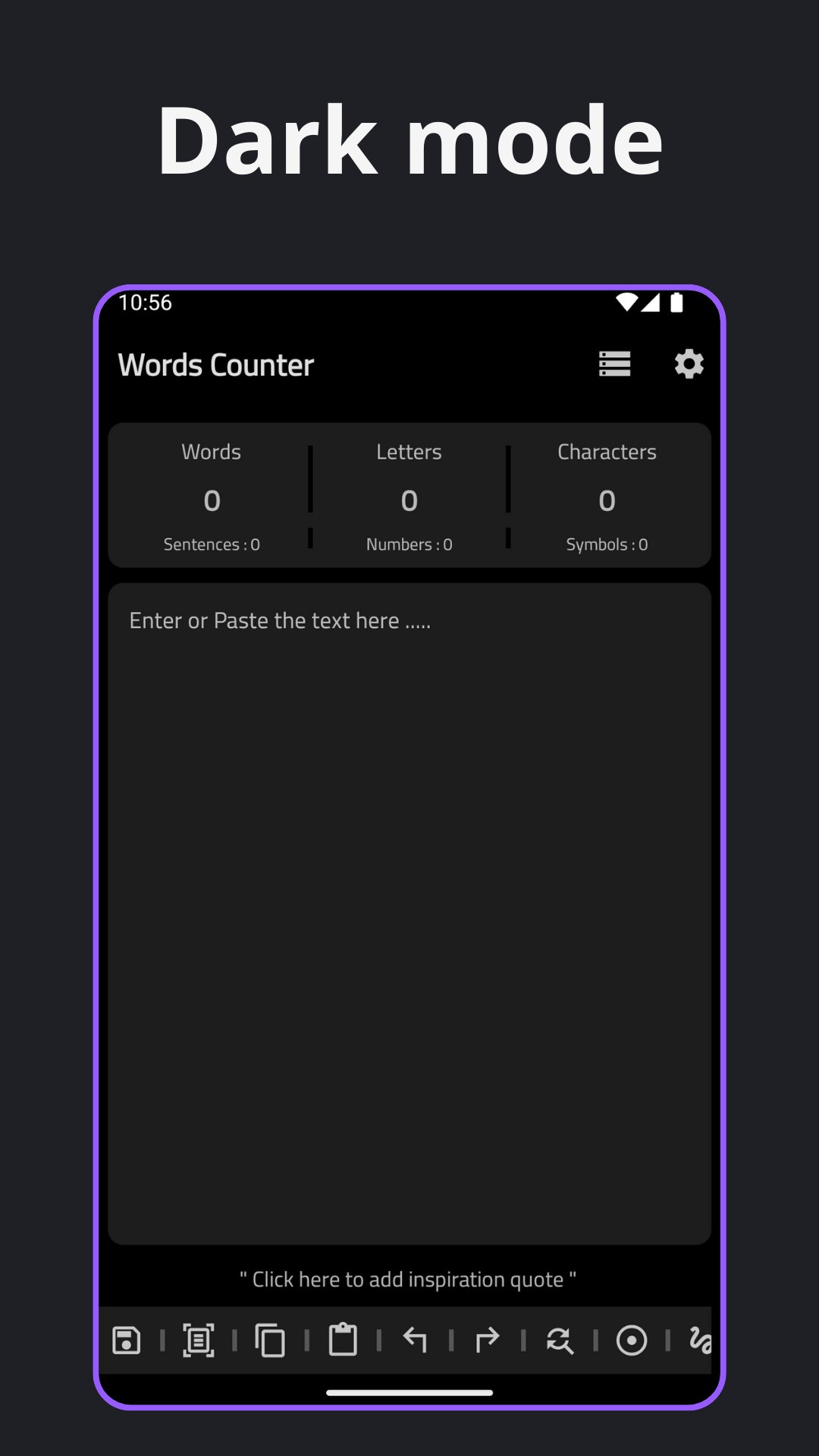 "Words Counter" is the all-in-one text analysis tool designed to simplify your writing tasks. Whether you're a student, a professional writer, or a content creator, this app provides precise and instant counts for everything in your text.