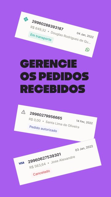 Track your business results, register products, access the details of each order and receive notifications whenever you have new sales.